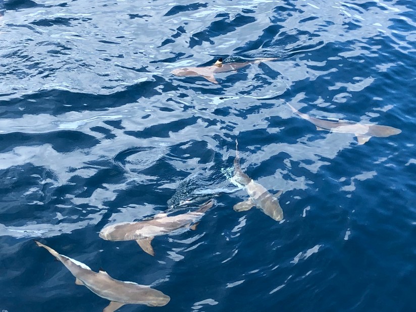 The sharks swimming around our boat for more than 15 minutes i guess. Up to the point where we are no longer excited and ignore the sharks to have our breakfast hahahaha…